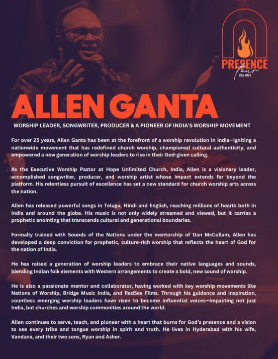 Allen Ganta — known for his passionate, Spirit-led music that unites hearts across cultures in praise of Jesus.